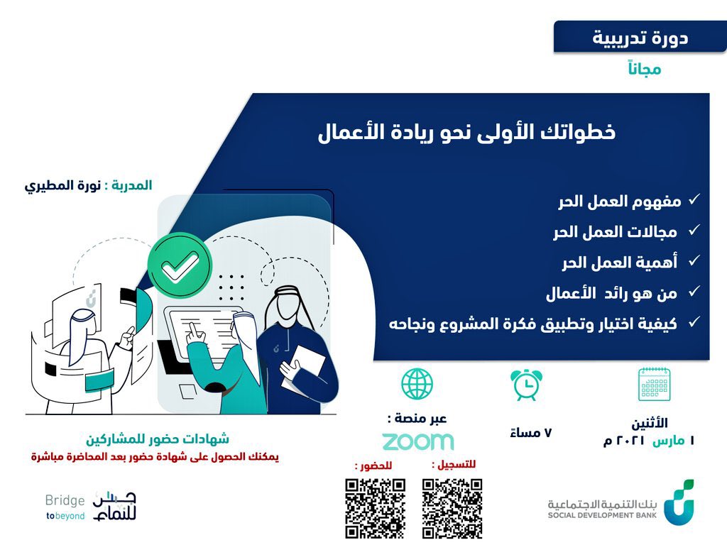 بنك التنمية الاجتماعية يقدم دورات تدريبية مجانية بعدة مجالات مع شهادة حضور