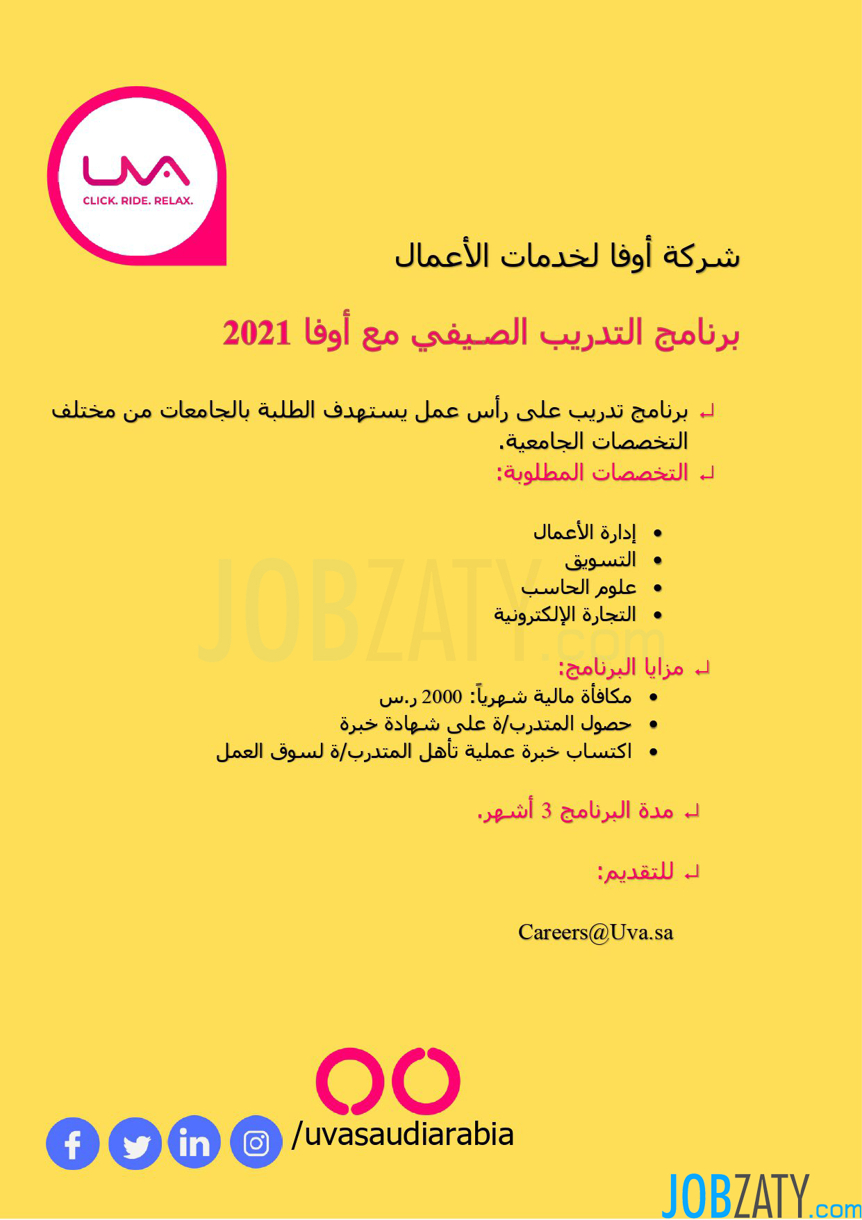 أوفا لخدمات الأعمال تعلن برنامج التدريب الصيفي مع مكافأة مالية وشهادة خبرة