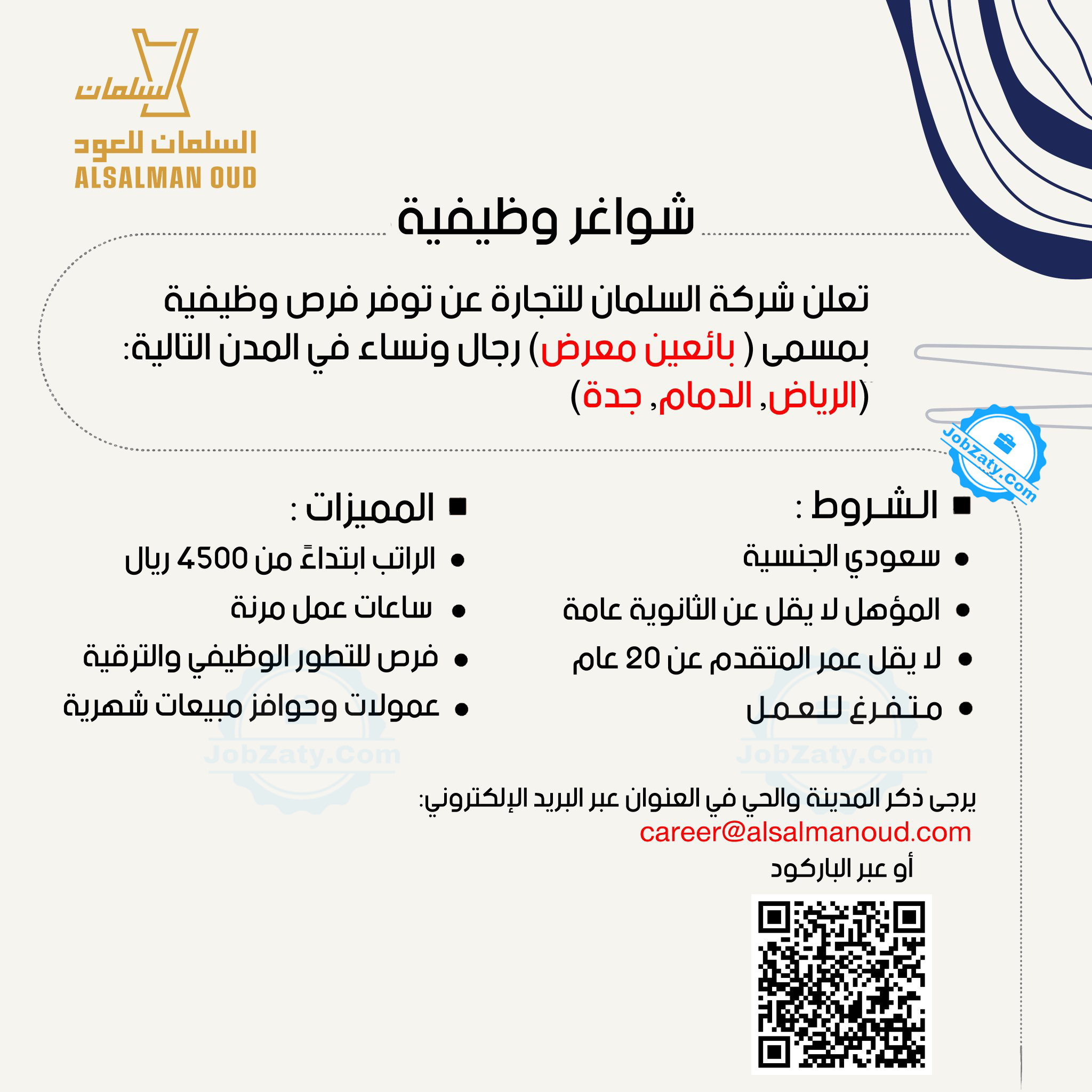 تُعلن فتح باب التوظيف (للرجال والنساء) من حملة (الثانوية فما فوق) للعمل بمجال المبيعات، بفروع ومعارض الشركة في (الرياض، الدمام، جدة) - مع ملاحظة أن التقديم متاح للسعوديين فقط - وفقاً للتفاصيل التالية: