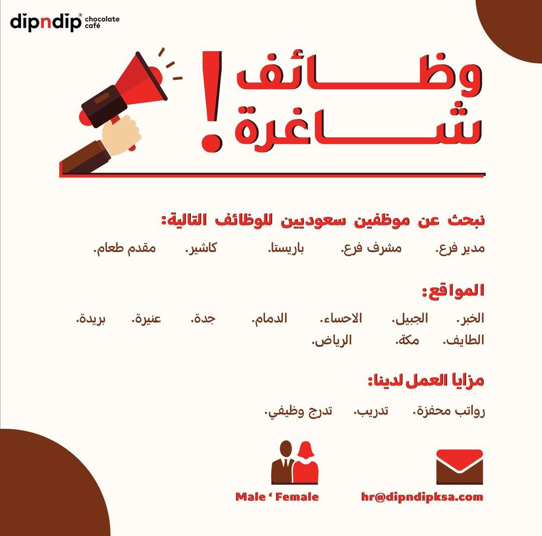 تُعلن فتح باب التوظيف للعمل بفروعها في مختلف مناطق المملكة وذلك في عدة مجالات (رجال / نساء)، وفقاً للتفاصيل التالية: