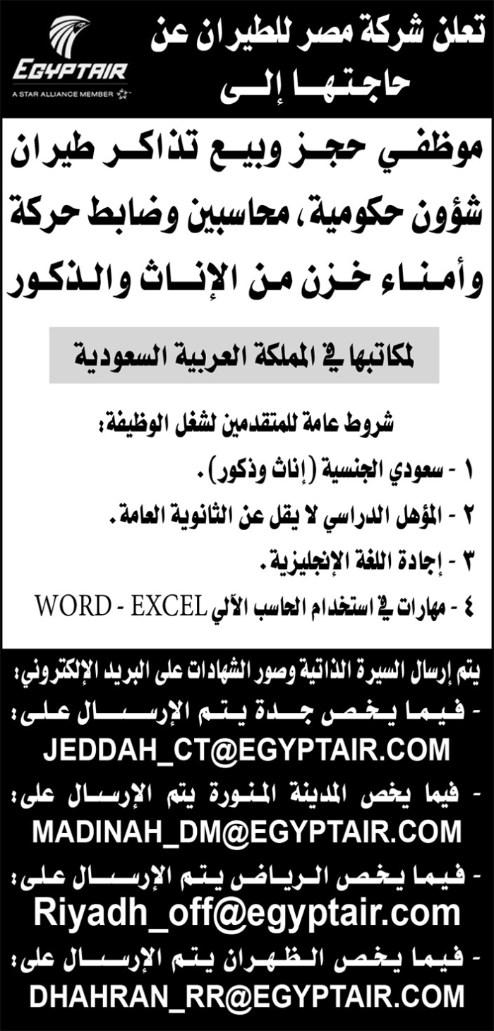 تعلن فتح باب التوظيف لحملة الثانوية العامة فما فوق، للعمل في عدة مجالات بفروع الشركة في كلاً من (جدة، الرياض، المدينة المنورة، الظهران)، وفقاً للتفاصيل التالية: