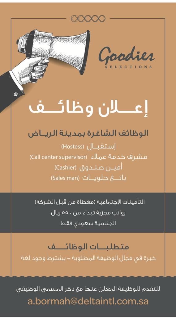 توفر وظائف إدارية شاغرة لحملة الثانوية، فما فوق للعمل بمدينة الرياض، مع ملاحظة أن التقديم متاح للسعوديين فقط، وفقاً للتفاصيل التالية: