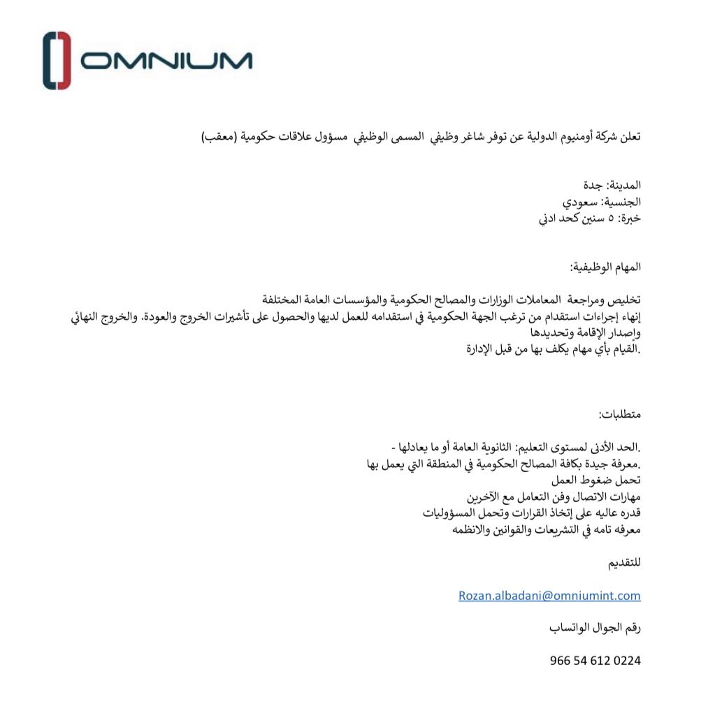 توفر وظائف إدارية لحملة الثانوية فما فوق للعمل بمجال العلاقات الحكومية (التعقيب)؛ بمحافظة جدة، مع ملاحظة أن التقديم متاح للسعوديين فقط، وذلك وفقاً للتفاصيل التالية: