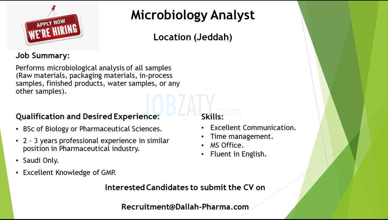 توفر وظيفة شاغرة للعمل لحملة البكالوريوس للعمل بمدينة جدة، مع ملاحظة أن التقديم متاح للسعوديين فقط، وذلك وفقاً للتفاصيل التالية: