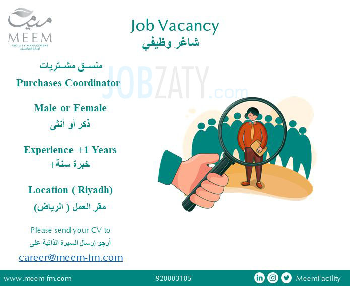 توفر وظائف شاغرة للرجال والنساء للعمل بمجال المشتريات بمدينة الرياض، مع ملاحظة أن التقديم متاح للسعوديين فقط، وذلك وفقاً للتفاصيل التالية: