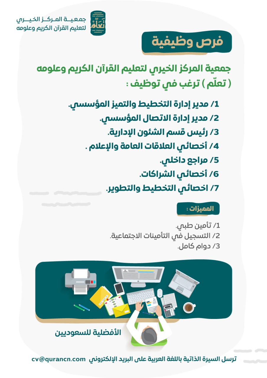 توفر وظائف إدارية شاغرة لحملة البكالوريوس فما فوق للعمل بعدة مجالات بمقر الجمعية بمدينة الرياض، مع ملاحظة أن التقديم متاح للسعوديين فقط، وفقاً للتفاصيل التالية:
