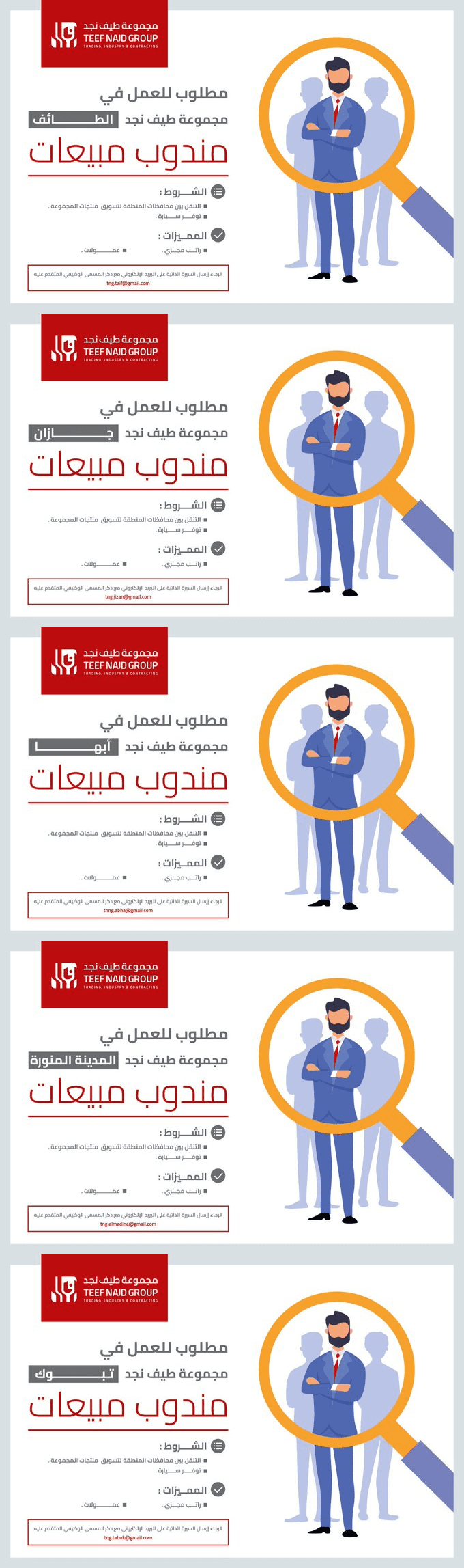 تعلن طرح وظائف لحملة الثانوية فما فوق لعمل بمجال المبيعات في عدة مناطق بالمملكة - مع ملاحظة أن التقديم متاح للسعوديين فقط، وفقاً للتفاصيل التالية: