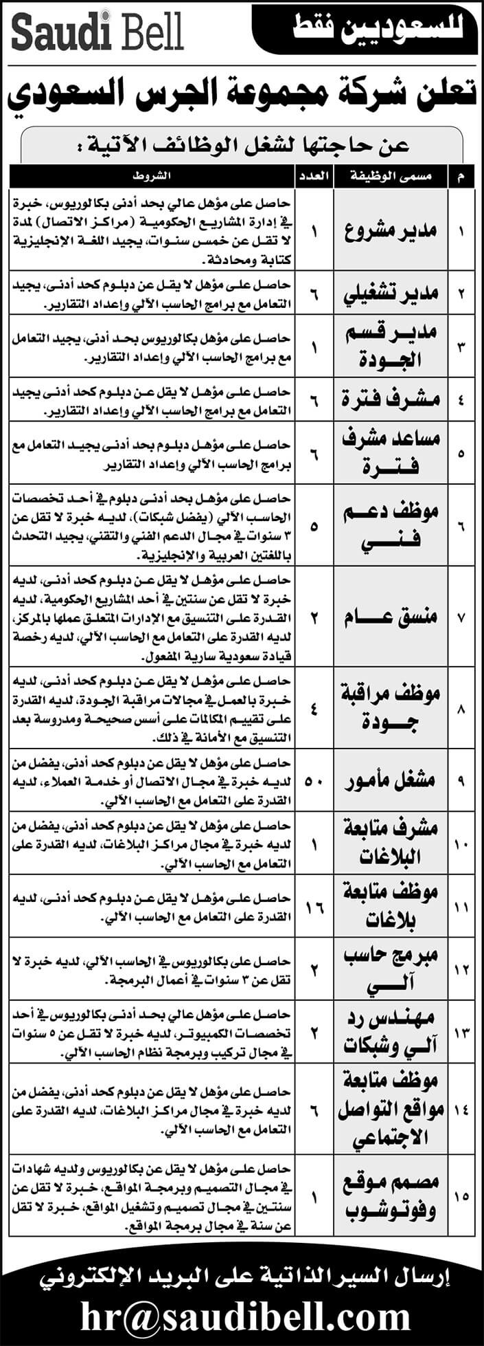 تعلن طرح أكثر من (100) وظيفة إدارية وتقنية شاغرة لحملة الدبلوم فما فوق (منها وظائف لا تشترط الخبرة)، بـ الرياض، مع ملاحظة أن التقديم متاح للسعوديين، وفقاً للتفاصيل التالية: