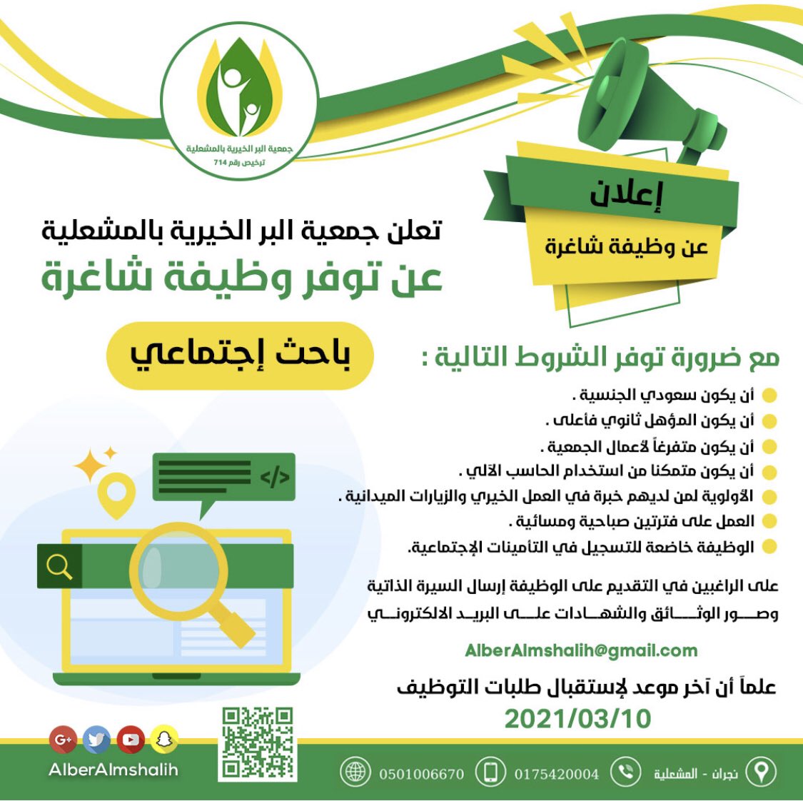 توفر وظائف شاغرة لحملة الثانوية فما فوق للعمل بمقر الجمعية بنجران - مع ملاحظة أن التقديم متاح للسعوديين فقط؛ وفقاً للتفاصيل التالية: