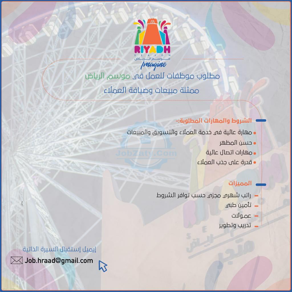 توفر وظائف شاغرة للعمل بمجال المبيعات وخدمة العملاء؛ بموسم الرياض مع رواتب ومزايا تنافسية، وفقاً للتفاصيل التالية: