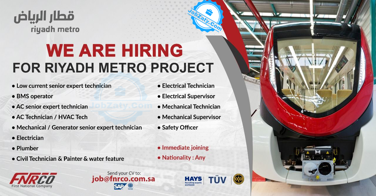 تعلن طرح وظائف هندسية وفنية لحملة الدبلوم فما فوق - للعمل في (مشروع مترو الرياض - المسار الأحمر)، وفقاً للتفاصيل التالية: