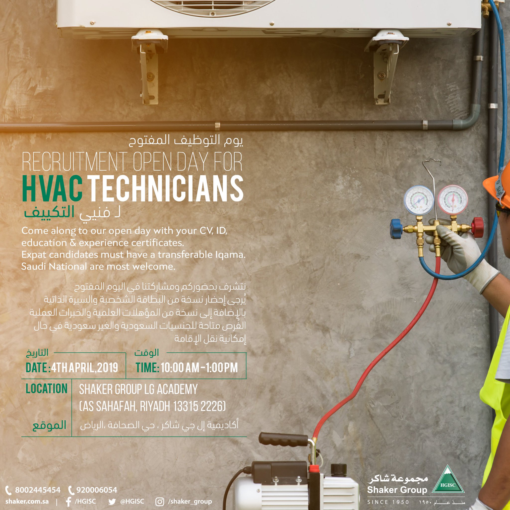 تدعوكم للمشاركة في اليوم المفتوح للتوظيف لـ فنيي التكييف