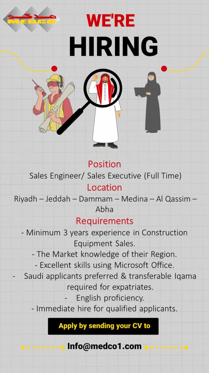 - خبرة لا تقل عن 3 سنوات في مبيعات معدات البناء.